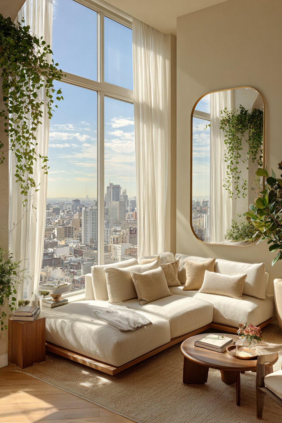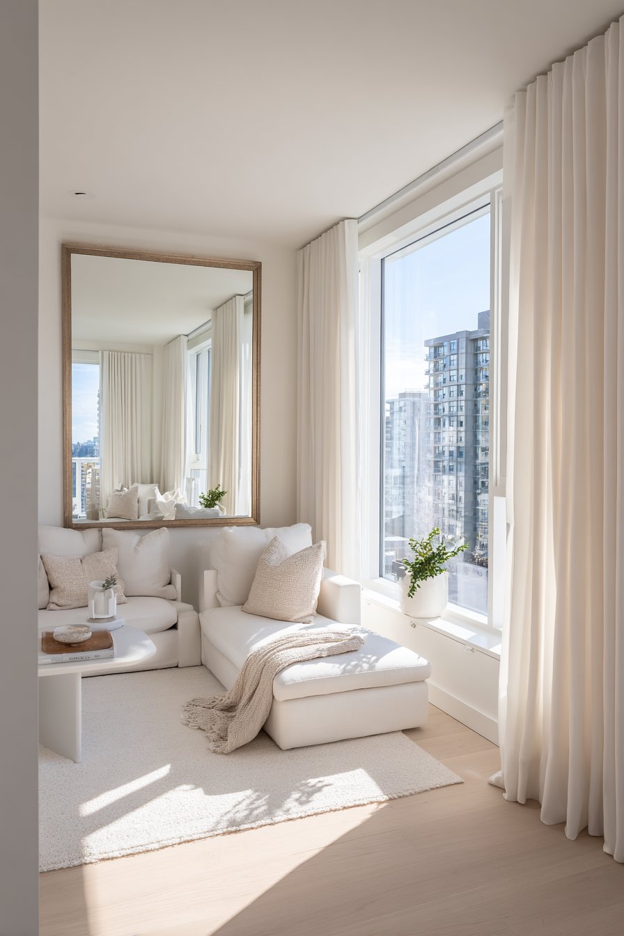Mirror placement amplifies existing light sources by reflecting sunlight into darker corners effectively. Strategic reflective surfaces create the illusion of additional windows while brightening shadowy areas naturally. This technique works especially well in basement apartments or north-facing rooms with limited direct exposure.