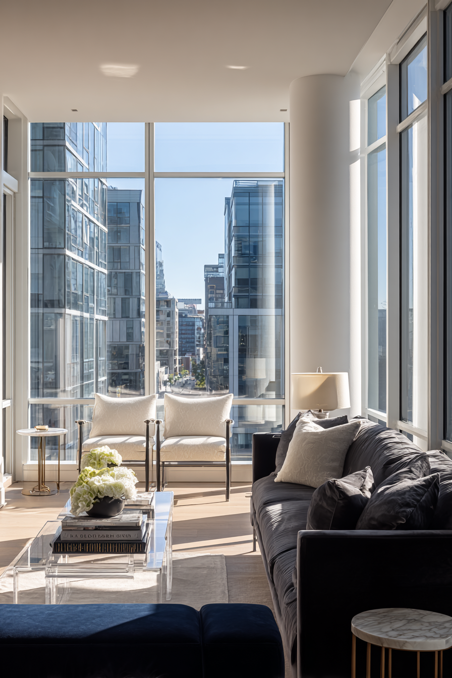 Choose armchairs with slim profiles and open arms instead of bulky club chairs. Consider armless accent chairs or slipper chairs, which offer comfortable seating while taking up minimal visual and physical space. Glass or acrylic coffee tables work beautifully because they provide function without blocking sightlines across the room.