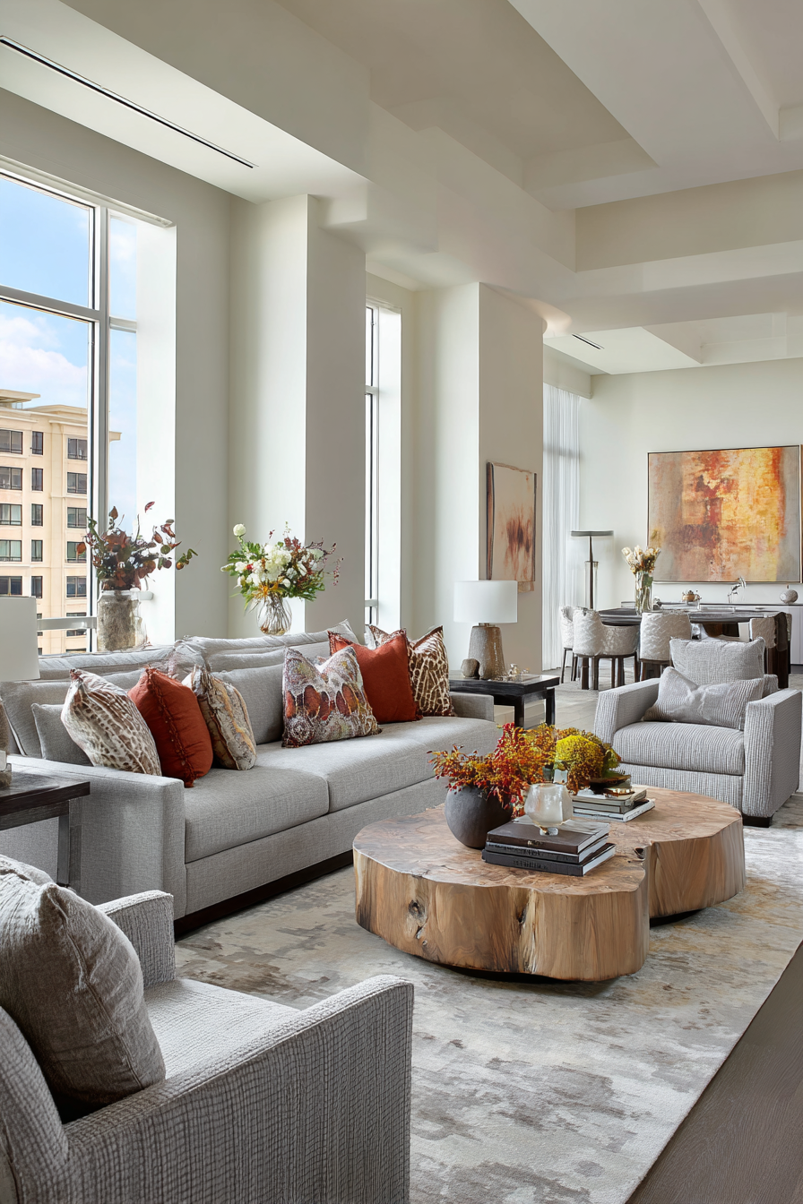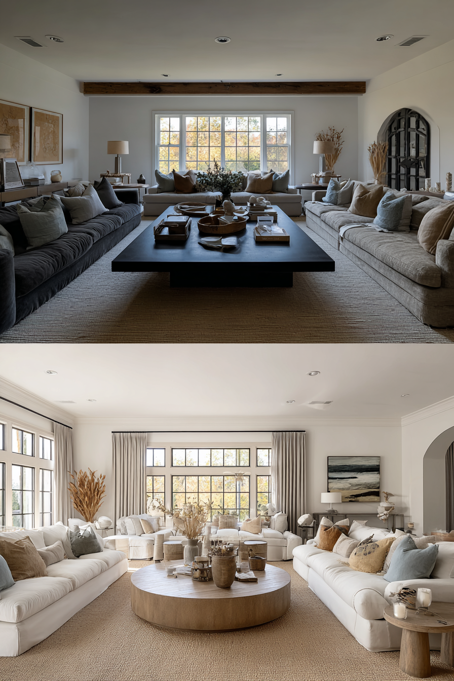 For families with young children, prioritize durable, easy-to-clean furniture and maintain open floor space for play. A sectional might work if it’s appropriately scaled, as it can provide abundant seating while defining a play zone on one side.