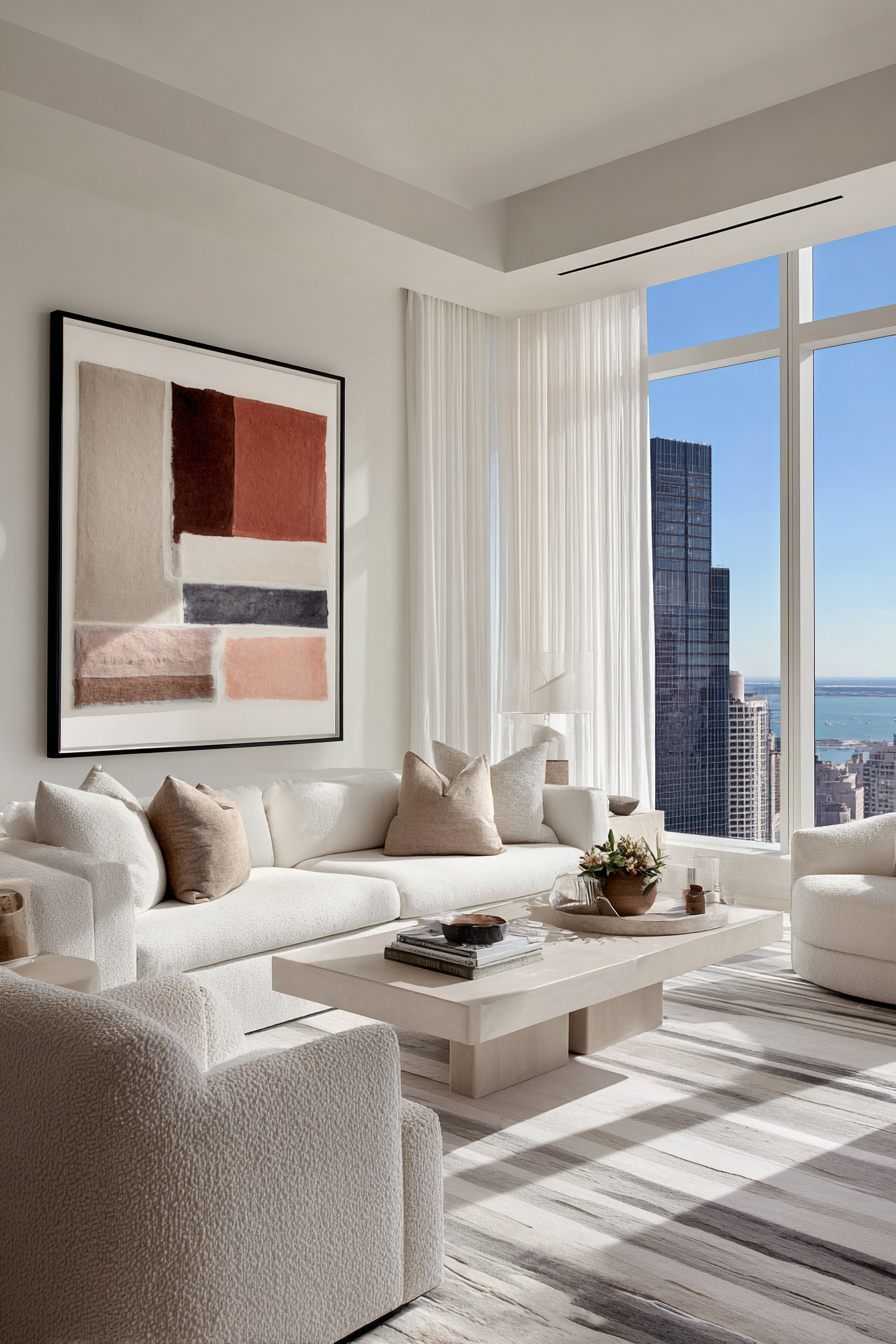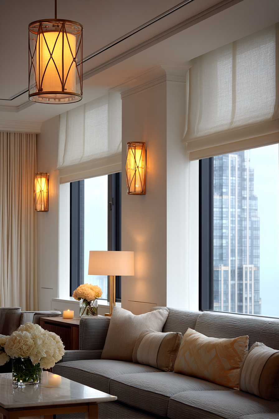 Maximize natural light by keeping window treatments minimal or choosing sheer fabrics that filter light while maintaining privacy. Mounting curtain rods higher than the window frame and extending them beyond the window’s width creates the illusion of larger windows and taller ceilings.