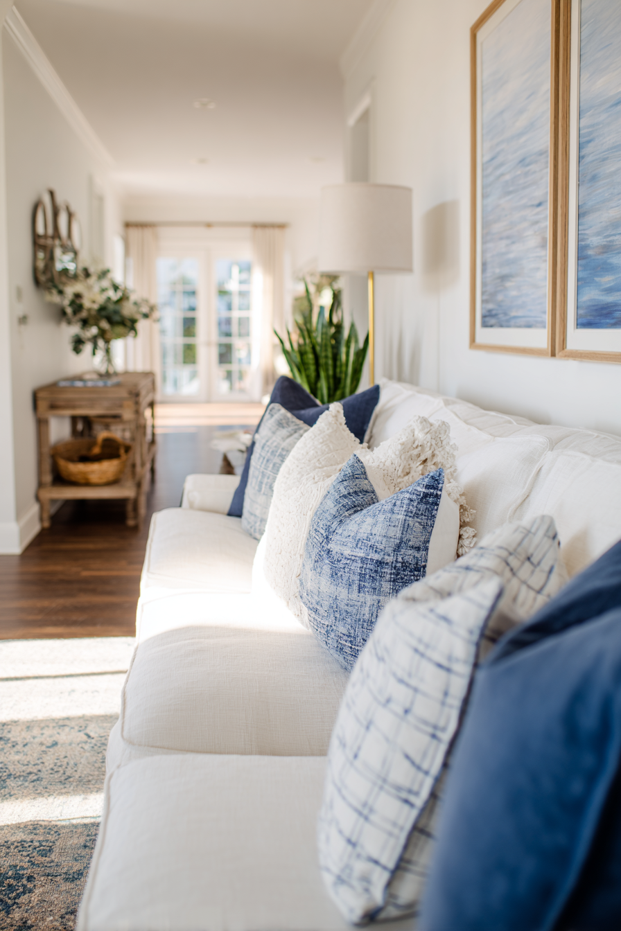 Once your furniture is arranged, thoughtful styling completes the transformation of your narrow living room.