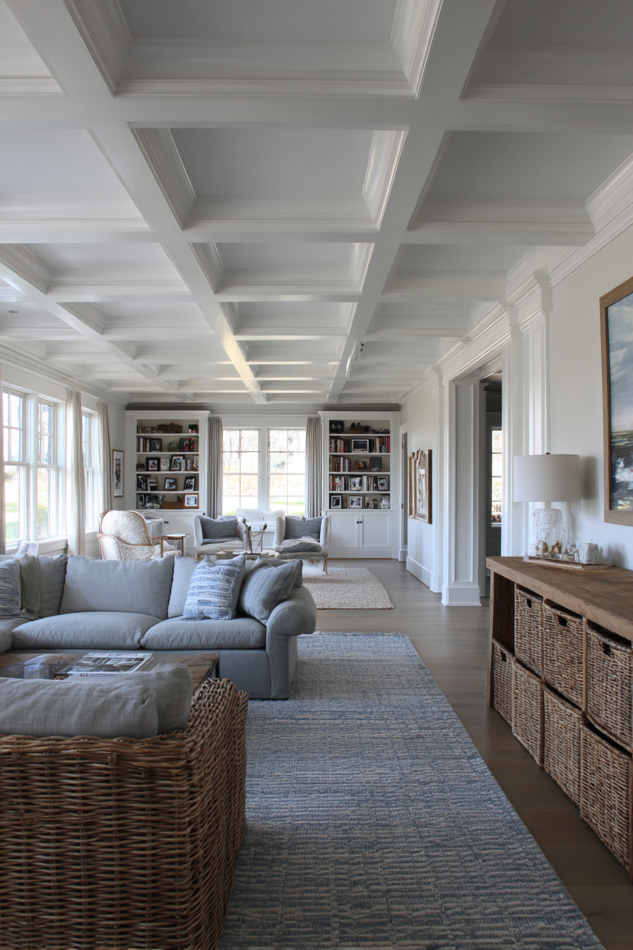 Varying ceiling treatments, if you’re undertaking a renovation, can subtly define different areas. A tray ceiling or different paint treatment in the main seating zone draws the eye and creates architectural interest without physical barriers.