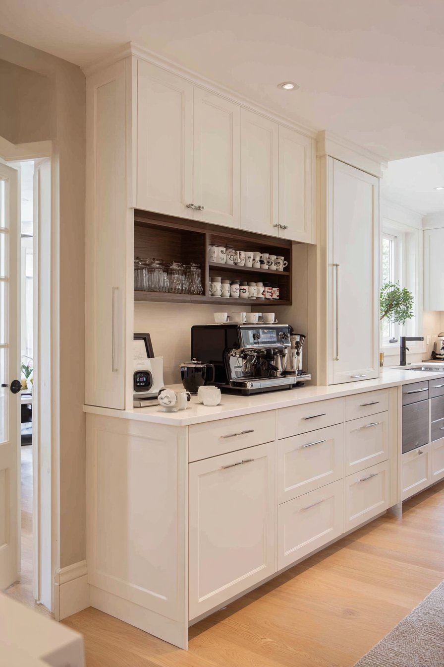 - Install charging stations in upper cabinets near kitchen desks or planning areas
