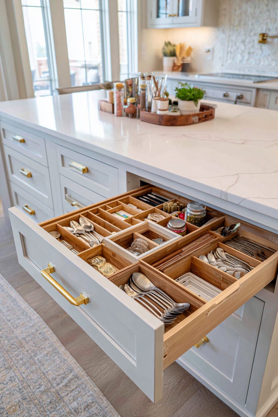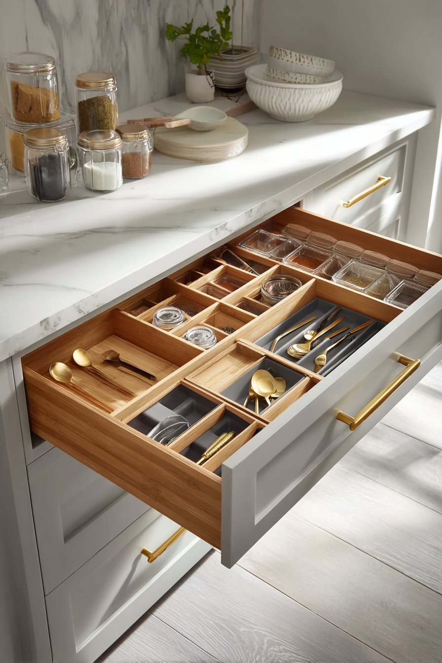 - Consider color-coordinated organizers that complement overall cabinet aesthetics