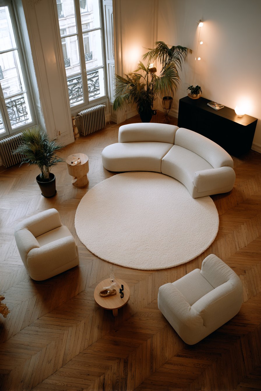 Asymmetrical balance can be just as effective as symmetry when executed properly. A large sofa on one side can be balanced by two chairs and a side table on the opposite side. The key is ensuring that visual weight distributes evenly across the room rather than clustering heavily in one area.