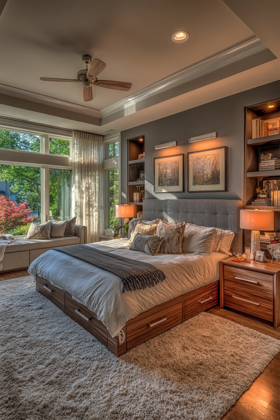 Proper lighting is crucial for functional bedroom design because couples have different schedules and reading habits. One partner might wake early while the other sleeps in. Task lighting prevents disturbing the sleeping partner during late-night reading. Multiple light sources create flexibility throughout the day.