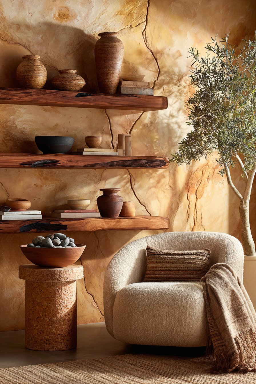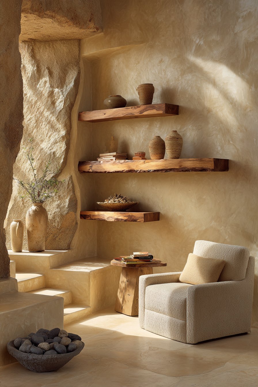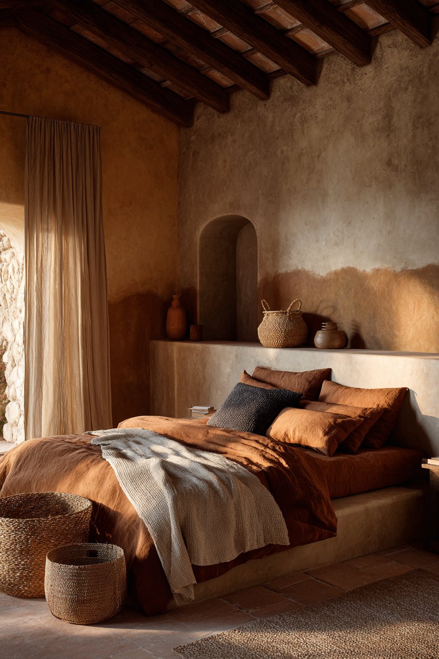 - Paint walls in warm neutrals with undertones of ochre, clay, or sand