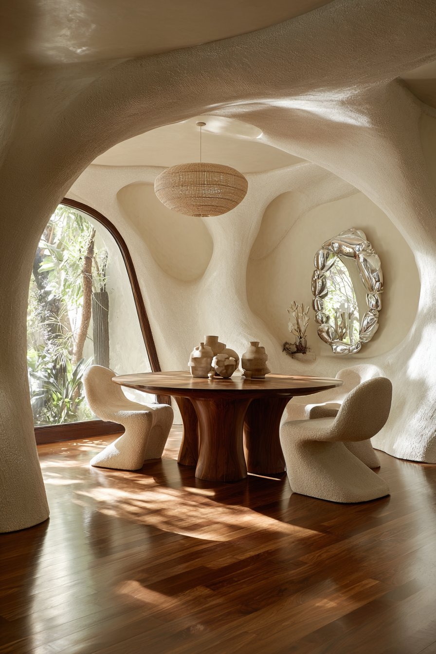 The organic design revolution embraces fluid, curved forms that mirror shapes found in nature. Rounded archways, circular mirrors, wave-like shelving, and sculptural furniture with soft edges create visual flow throughout the space. These gentle curves promote movement and ease, contrasting sharply with the rigid geometry that dominated mid-century and industrial styles.