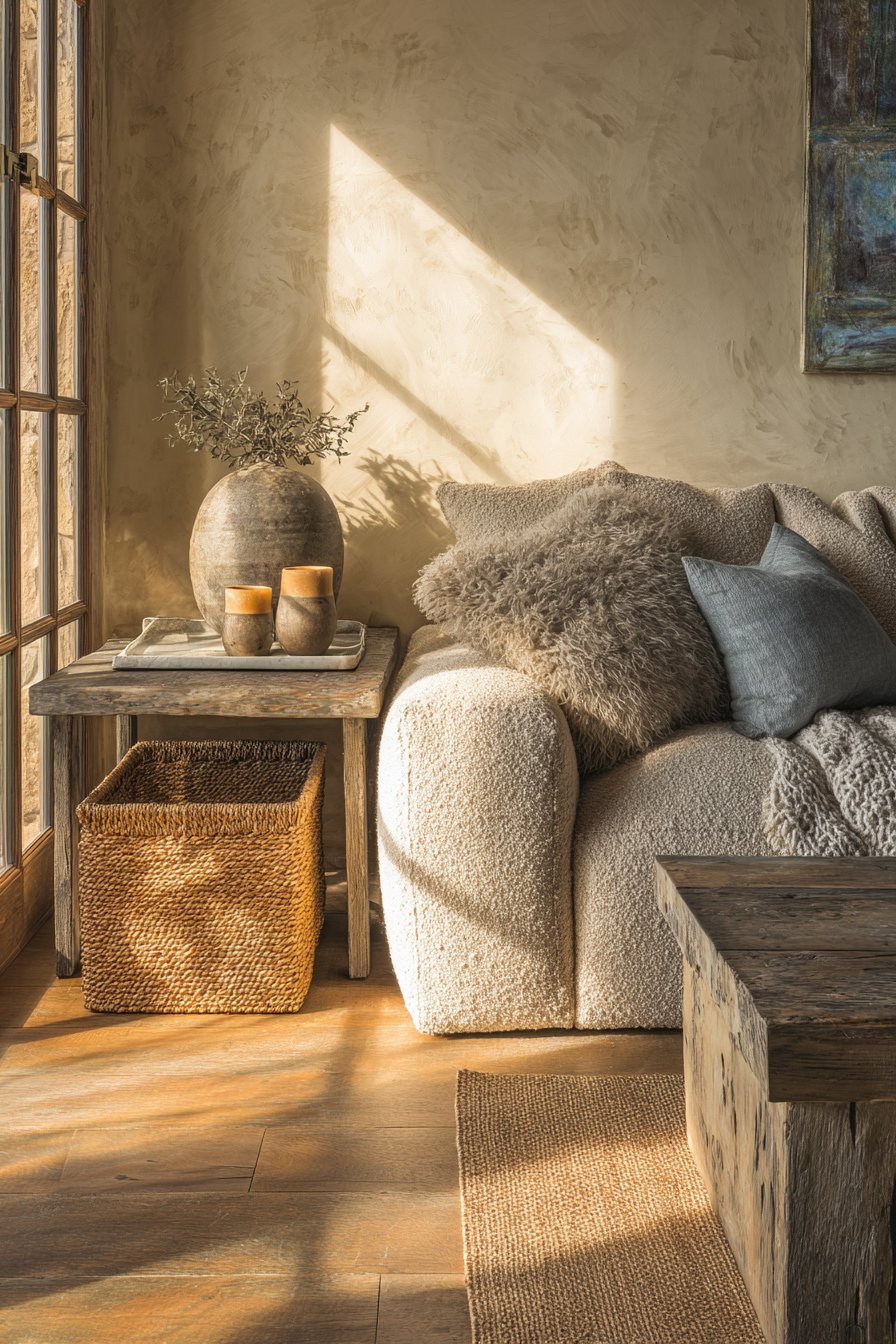 Wall treatments contribute significantly to overall texture. Lime wash plaster, venetian plaster, or textured wallcoverings with organic patterns add dimensional depth to vertical surfaces. These finishes catch and reflect light differently throughout the day, creating subtle shifts that keep spaces feeling alive and responsive to natural cycles.