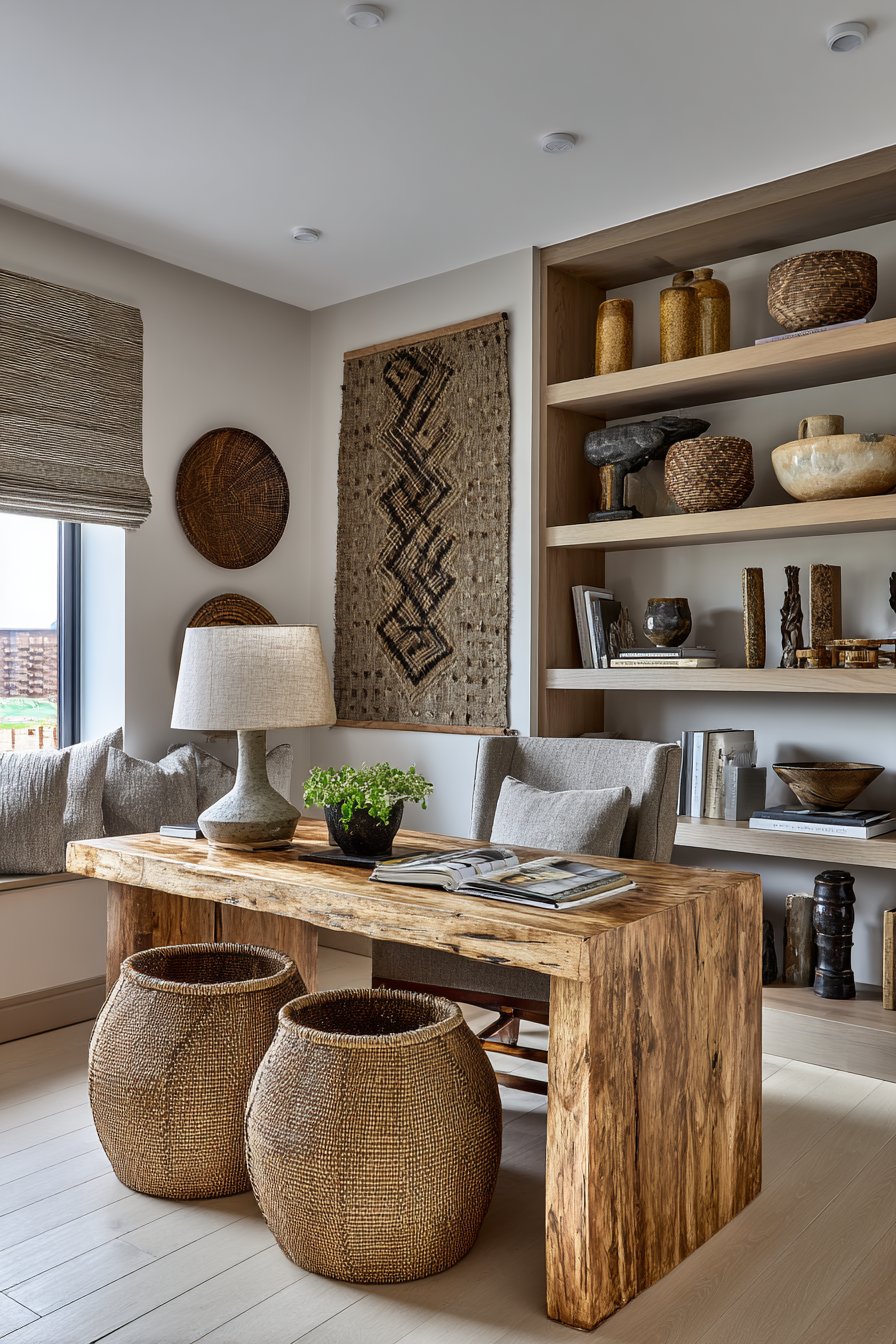 - Include woven elements like baskets, wall hangings, or rattan furniture