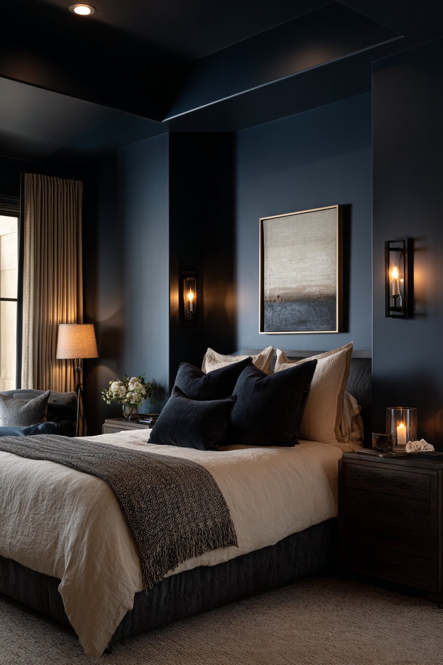 Don’t shy away from using near-black shades on walls, ceilings, or built-in features. These create a cocooning effect that makes rooms feel intentionally intimate rather than accidentally dark. The transformation can be dramatic, turning ordinary spaces into extraordinary retreats.
