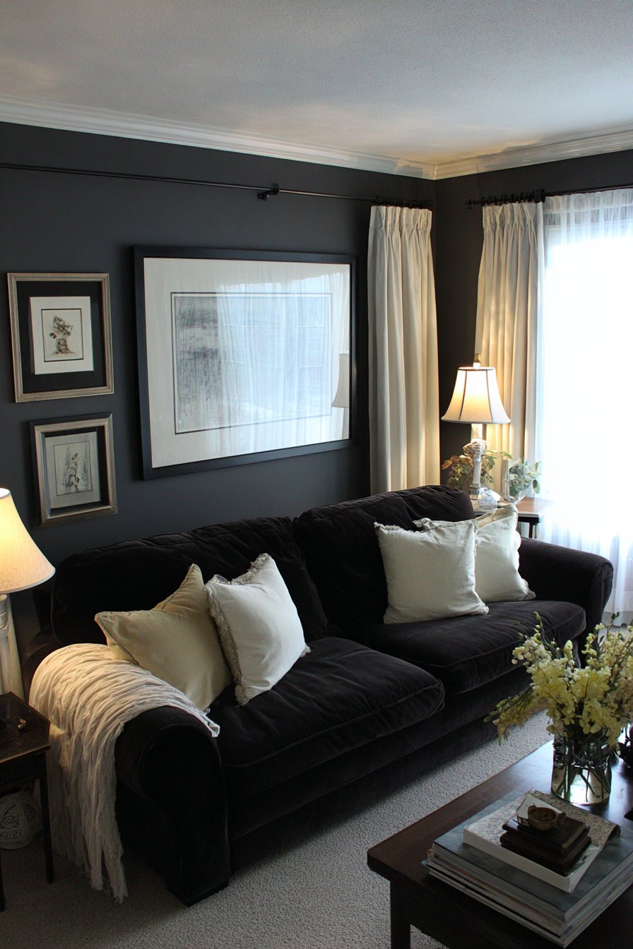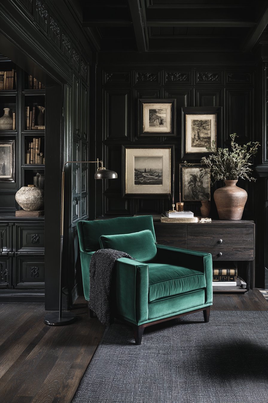 The final layer involves carefully curated accessories that enhance the moody atmosphere without cluttering. Less is often more in these dramatic spaces where each piece should feel intentional. Dark walls provide an excellent backdrop for showcasing meaningful objects and artwork.