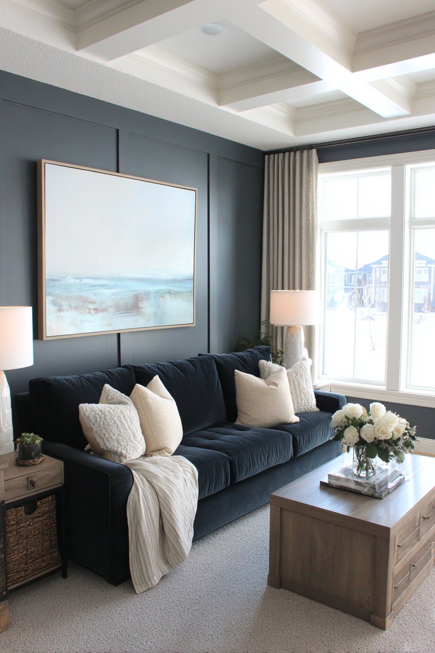 Strategic placement of contrast elements makes moody rooms feel intentional rather than accidental. White ceiling molding, light-colored artwork, or pale furniture pieces break up expanses of dark color. This balance ensures the space remains livable and comfortable for daily use.