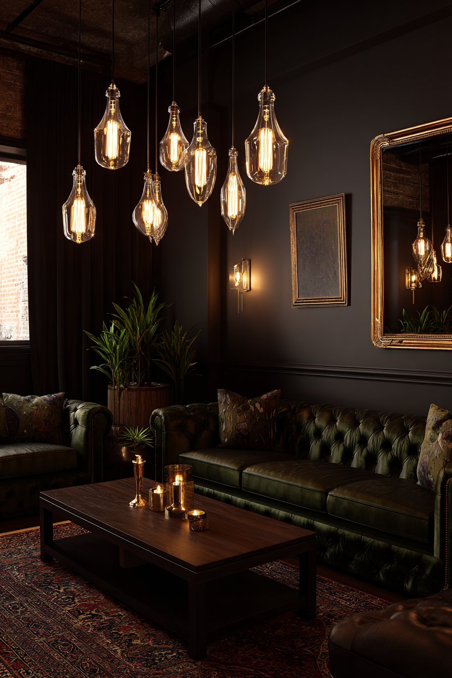 Lighting becomes critically important in moody interior spaces where natural light might be limited. The right lighting strategy transforms dark rooms from cave-like to captivating. Multiple light sources at varying heights create layers that add warmth and functionality.