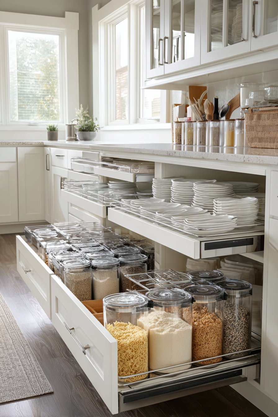 Tiered shelf organizers allow you to stack items without creating difficult-to-reach piles. These risers let you see everything at a glance and grab what you need quickly. Pull-out drawers installed within cabinets bring back-corner items to you rather than requiring you to dig. This accessibility improvement changes how you use your cabinets daily.