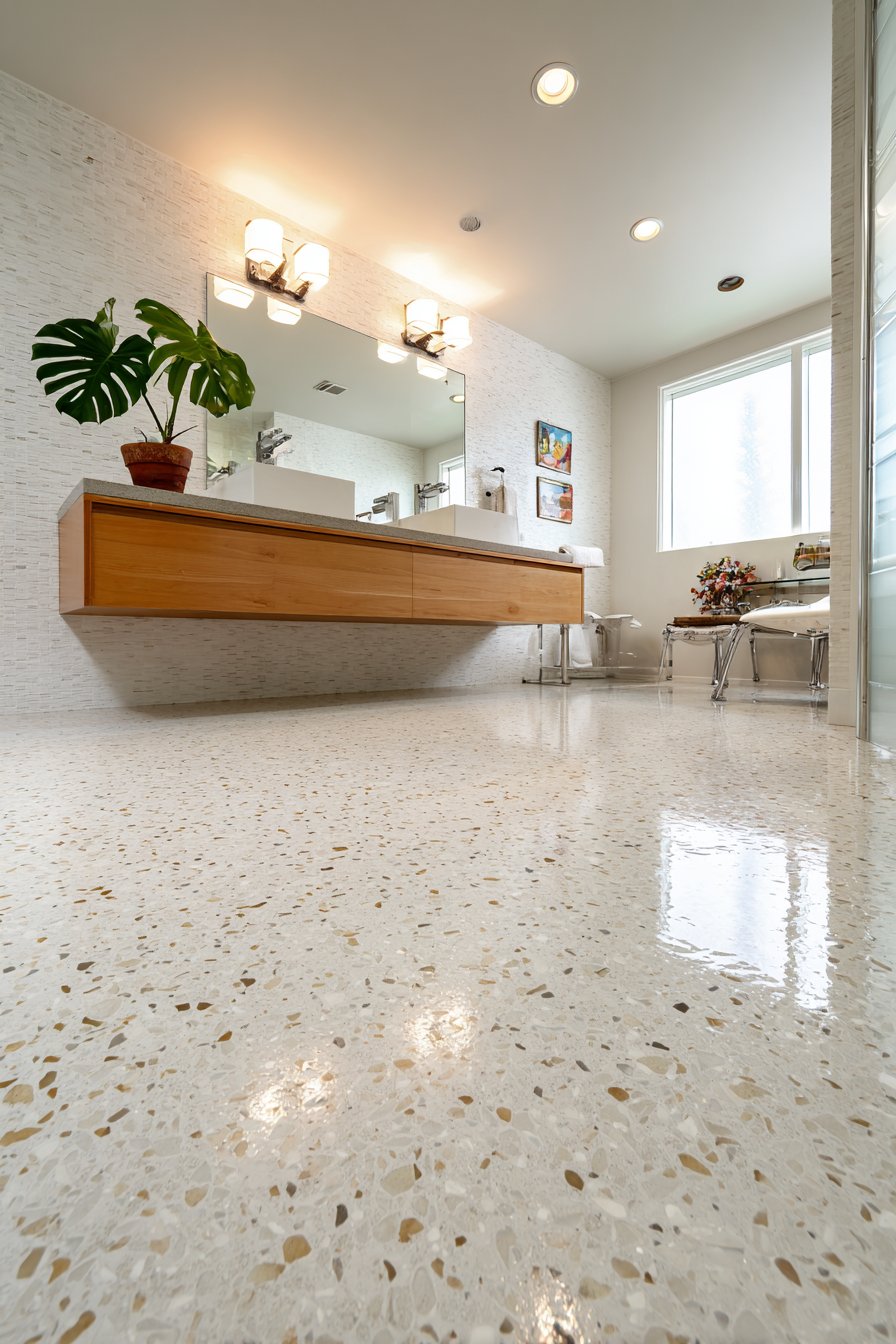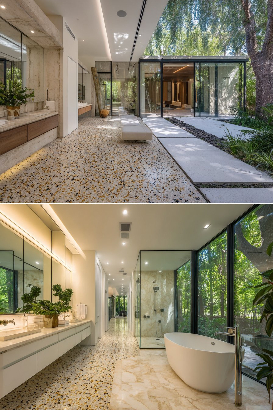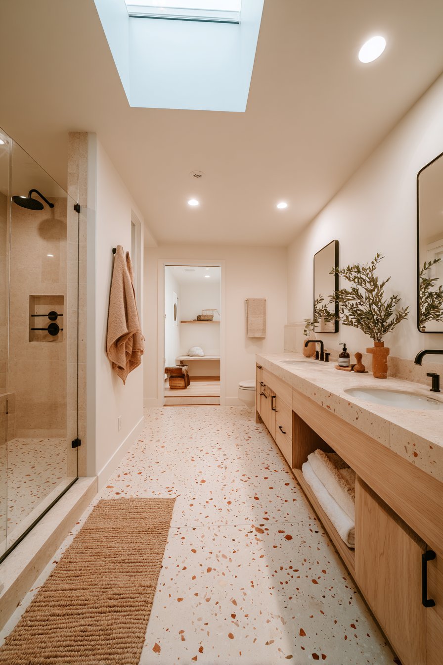 - Use terrazzo for bold statement floors in spacious bathrooms