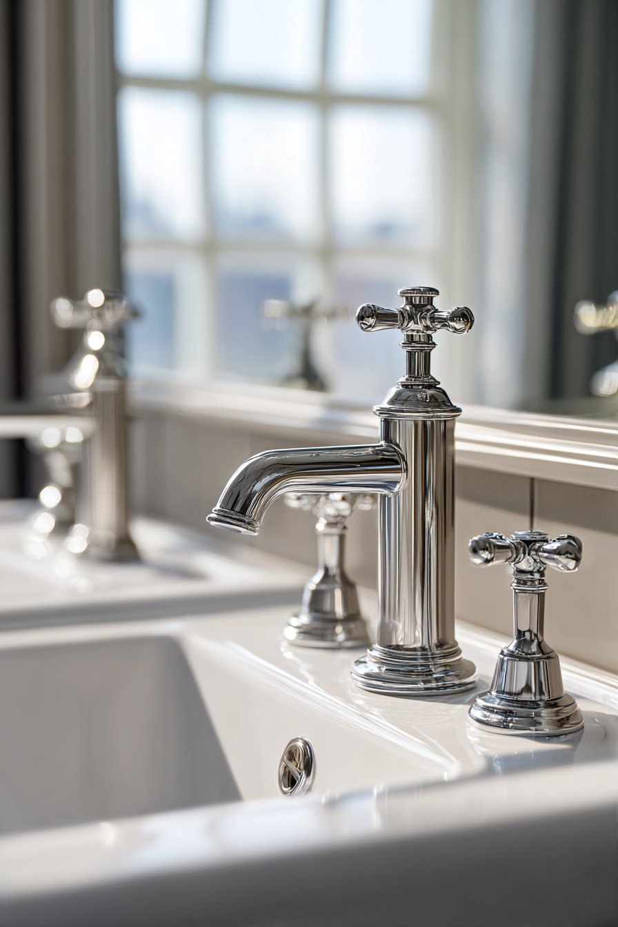 Choose fixture styles with clean, simple lines that avoid overly ornate or trendy details. Traditional cross handles, lever controls, and straightforward spout designs have proven their staying power across generations. These classic shapes complement various design approaches while avoiding the dated appearance that befalls more fashion-forward fixture styles.