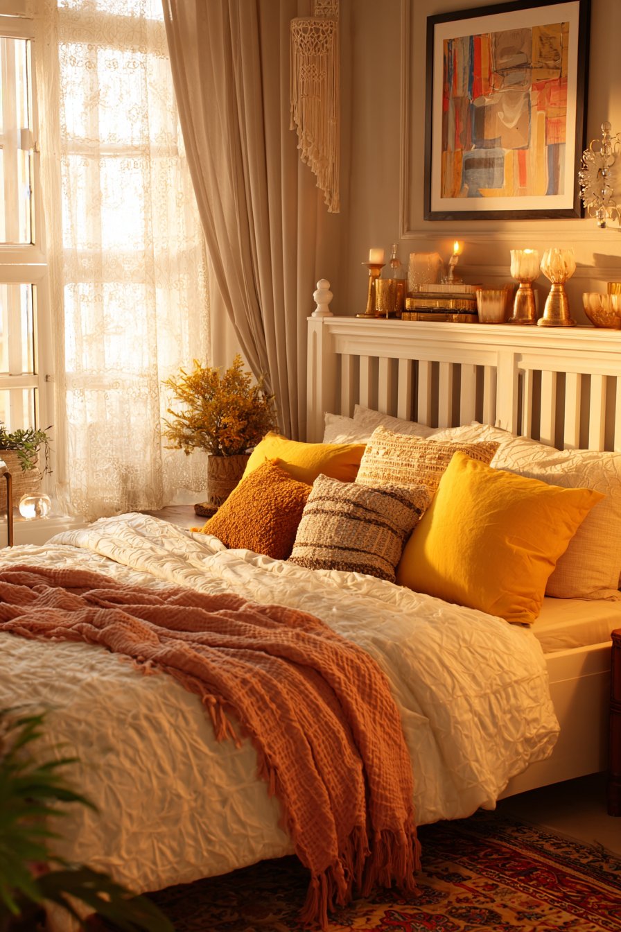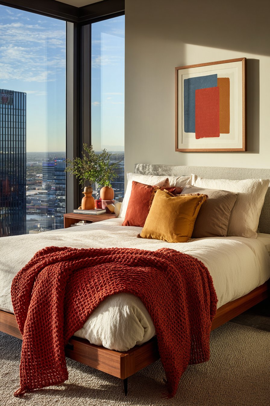 These pops of color should be easily changeable, giving you flexibility to refresh your space seasonally. Removable elements like decorative cushions and throws allow you to update your bedroom’s look without major investment or commitment.