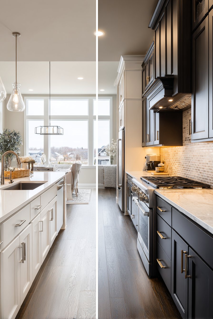 - Photograph inspiration images showing both cabinet colors in similar spaces