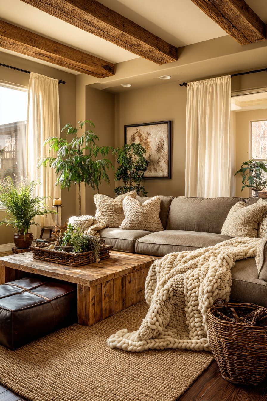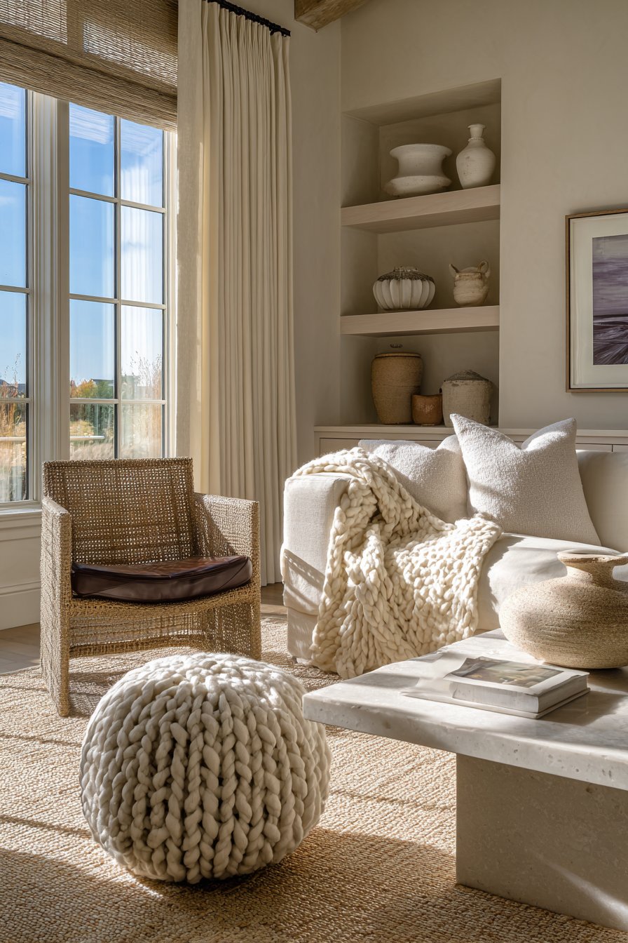 - Use textured neutrals as your foundation before adding color