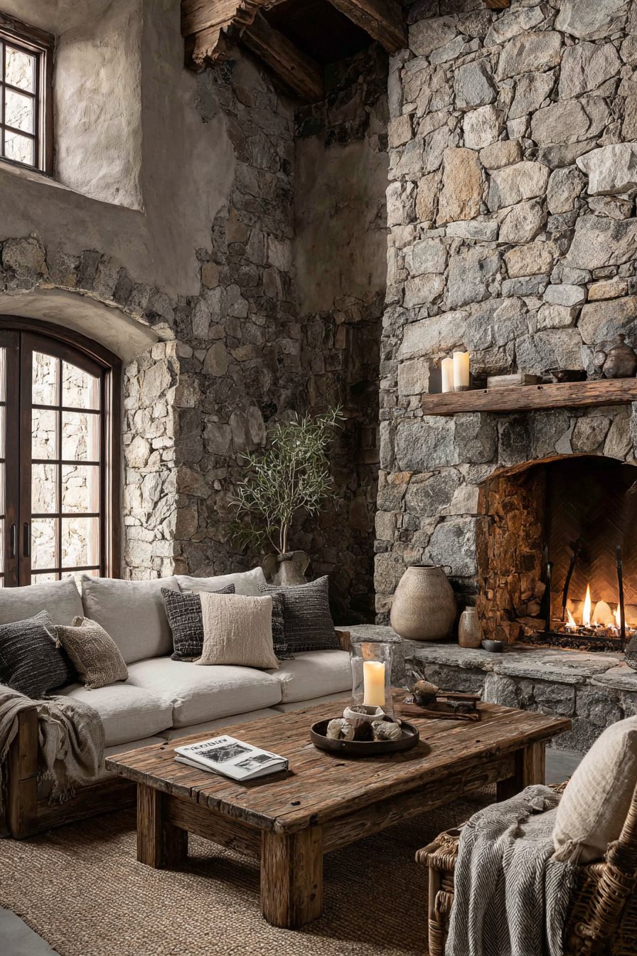 Vertical texture variations guide the eye and establish hierarchy within spaces. Rough stone from floor to mid-wall height grounds a room, while smooth plaster above creates lift and airiness. These transitions define zones and create visual movement that flat color changes cannot replicate with equal subtlety.