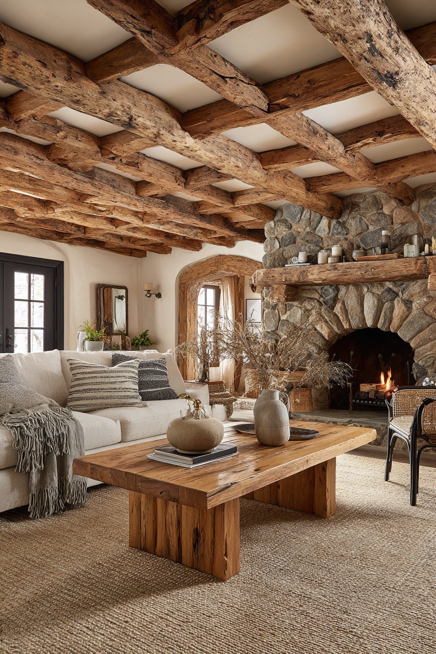- Mix organic textures like wood and stone with manufactured materials