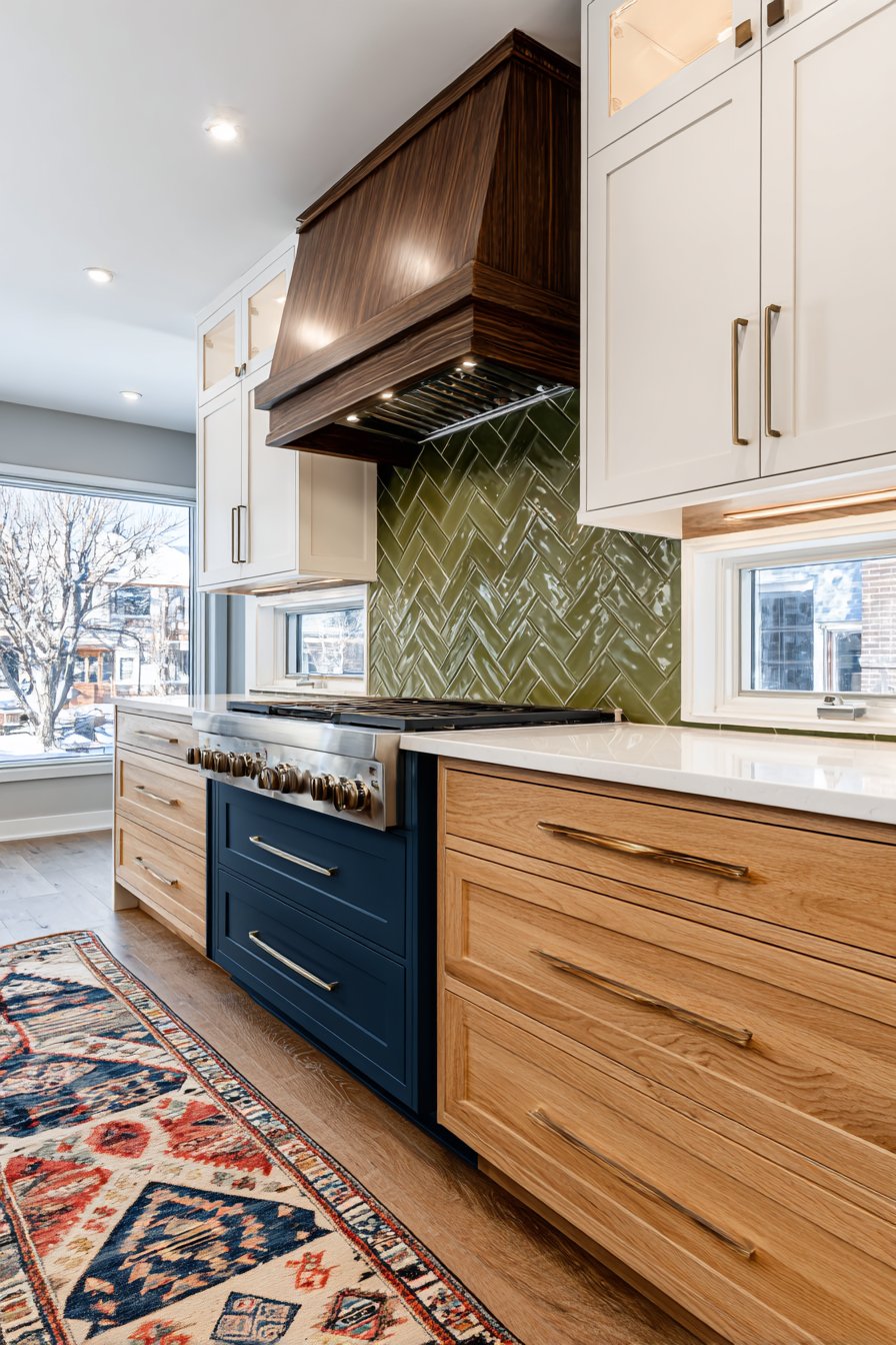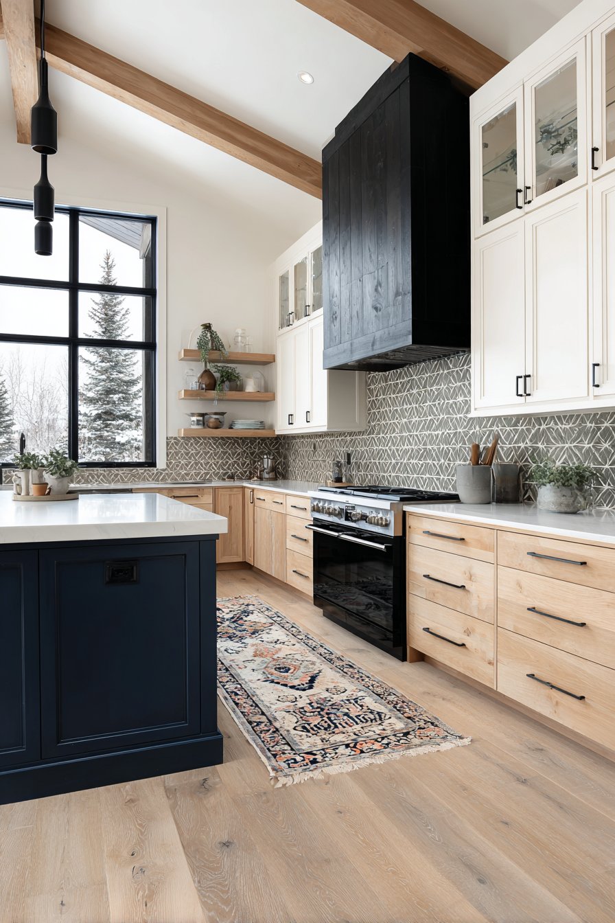 Don’t neglect the potential of painted elements within your wood kitchen. Consider painting a central island in a bold color while keeping perimeter cabinets wood, or vice versa. This two-tone approach has become increasingly popular and successfully bridges traditional and contemporary styles.